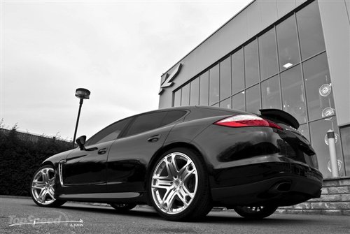 黑色是改装中的经典颜色之一,而黑色也有哑光、虹光、金属等多种颜色。英国改装厂Project Kahn一向也喜欢黑色,下面出场的保时捷Panamera也是一款“狠角色”。外观方面,Project Khan为该车加入了新的空气动力学套件,并调低了悬挂。车漆的黑色被称为“Jet Black”,而轮毂则来自于Project Kahn,型号为RS-600。
