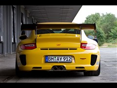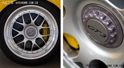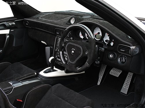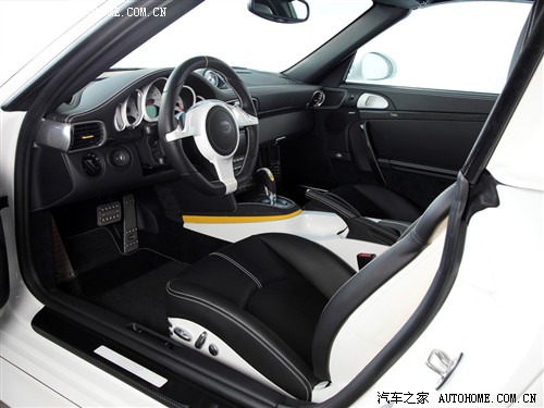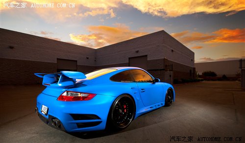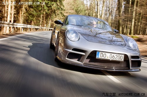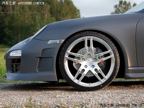 这是最正宗的保时捷车系——911的改动,包括动力、外观和悬挂。轻量化是这辆车的第一步,拆除不必要的设施、将许多超体重的部件换装轻量化PU制品,轮圈用到20寸大小,前轮8.5 J、后轮12 J,车身被降低30mm,整车跑态顿显。