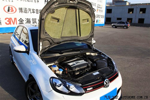 总结:这辆车提供了很好的外观原厂升级的启发,利用高尔夫R的外观部件,进行观感的性能化提升,同时刹车、轮圈,也同样适用R系列部件,这样省却动脑筋搭配零件的功夫,同时很容易出效果,当然,那套Caractere包围,就不是每个人都能接受得了。从图片也能看出,这辆车还大幅度的改了音响,增加了车重,如果动力部分没有跟进弥补,实在说不过去。