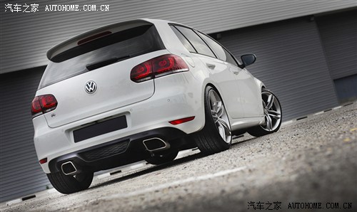 接下来,我们来关注一下几家欧洲改装厂牌,针对高尔夫分别有什么值得一看的改装套件。首先,当然是ABT,这家公司俨然成为大众改装的御品代表之一,其最引以为傲的,就是从1950年代开始,源自赛道的汽车改装文化。面对高尔夫,这辆在德国驰骋超过30年的人气车型,ABT 推出一款车身包围套件,套件包括前/后包围、侧裙、车顶小尾翼,从设计风格来说,不算十分激进,反而有一丝行政气息,如果您每天出入写字楼区,确实十分合衬。此外,这套包围搭配上ABT的轮圈和排气,能够凸显很别致的感觉。特别是这款排气,采用双出上下喉嘴的设计,这是时下流行的造型元素,给外形平添一点趣味性吧。这家德国改装公司同时为高尔夫准备了一套动力提升的方案,通过ABT程序的写入,原来大众高尔夫1.4TSI发动机可以得到额外的20马力。